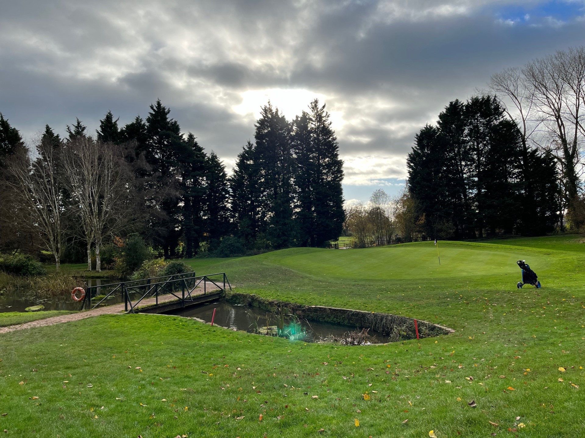 A stalemate over the valuation ensued, with Arderne plc – owners of the Championship Course next door, taking over in 1995, before Macdonald took first partial and then full control. The Championship Course was designed by Donald Steel, and is ‘characterised by unique and distinctive holes; expansive water hazards and cascading waterfalls are among the tests’. It’s a fairly dull November day when we take it on, with glimmers of sunshine and blue sky, and ominous dark clouds overhead.